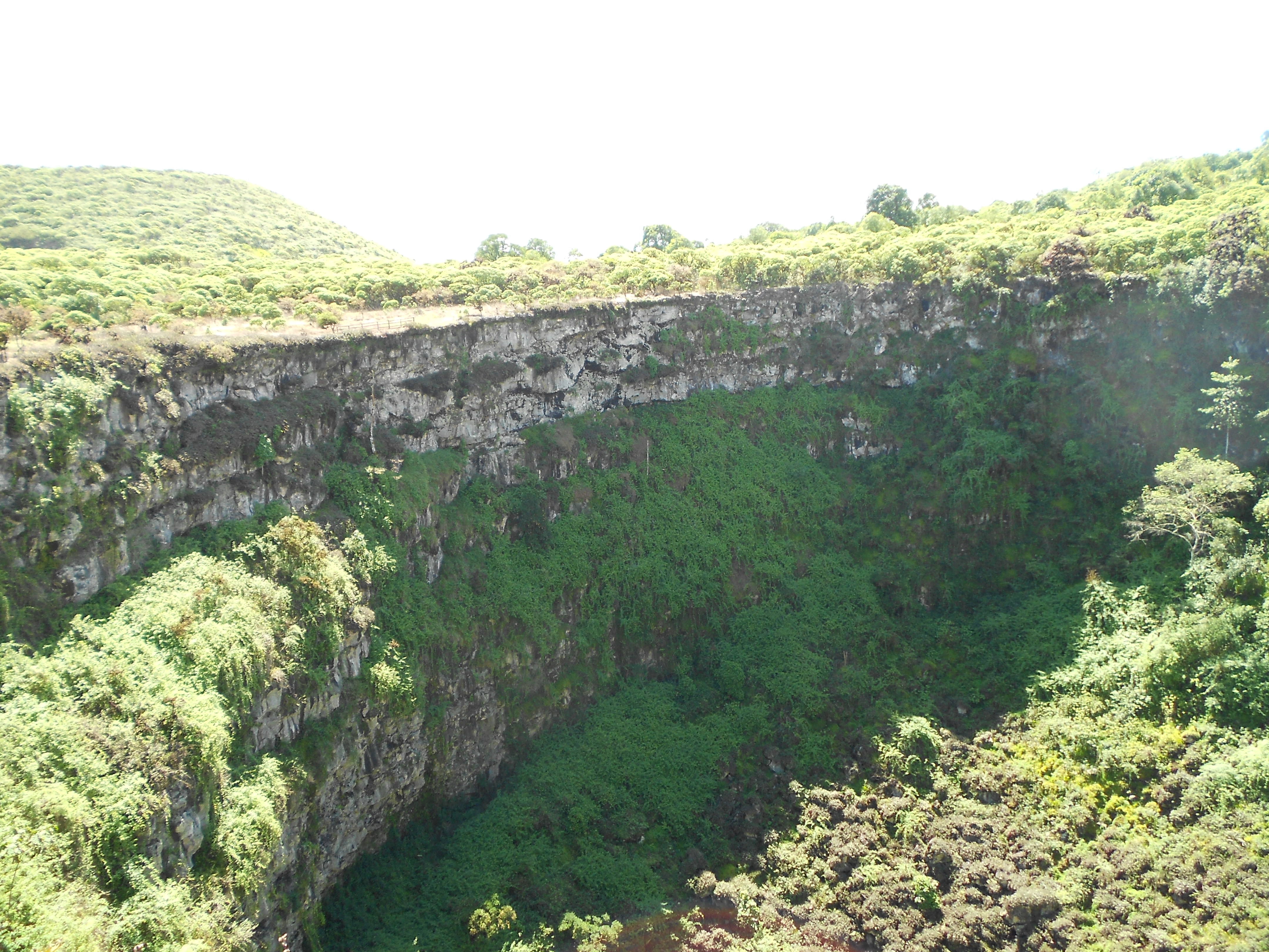 These twin craters were not caused by impact, but rather they’re sinkholes created when the volcanic roof of empty magma chambers collapsed from tectonic shifts and erosion over time. Still pretty cool.